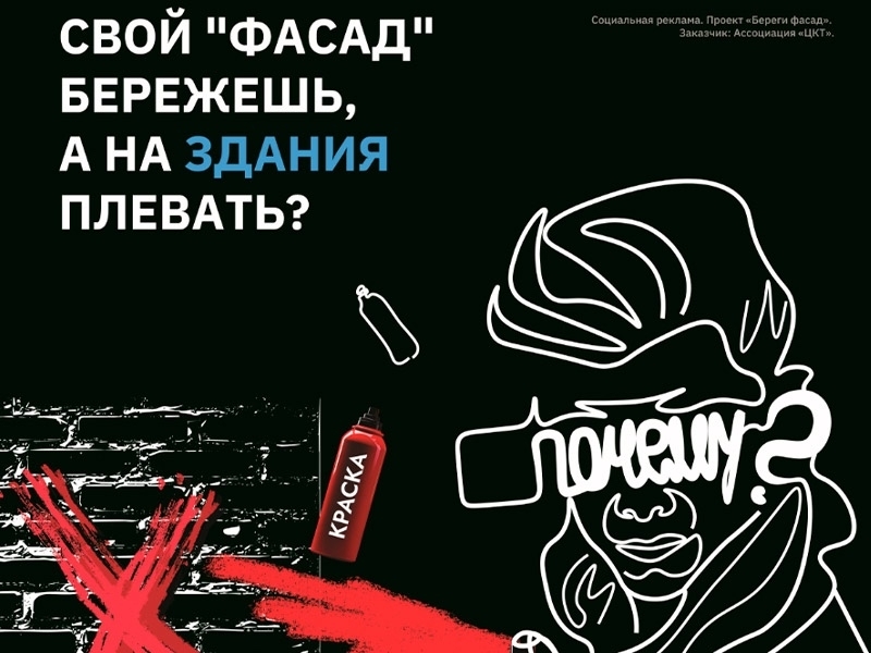 Ястребова А. В. 10 Февраля 2025 Предотвращение актов вандализма Социальный плакат по предотвращению совершения актов вандализма в отношении фасадов зданий и иных элементов благоустройства, подготовленный Государственной административно-технической инспекцией Санкт-Петербурга.