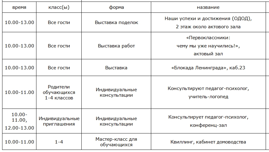 Уважаемые родители! 7 февраля 2026 года состоится единый общегородской день открытых дверей в школах Санкт-Петербурга. В нашей школе планируются: собрание для родителей будущих первоклассников, собрания для родителей выпускников (9 и 11 класс), индивидуальные консультации учителей и службы сопровождения, выставки, мастер-классы! Подробности >>>
